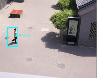 视频浓缩 视频浓缩就是将很长的视频压缩成短视频,方便监控者快速浏览视频信息。下图展现的是原始视频中,不同时刻出现的三个行人。